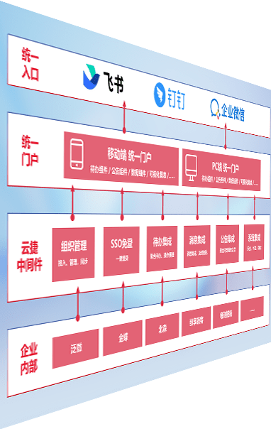 对协作平台提供支持服务,,,支持企业应用与协作平台对接,,,,包含组织同步、、、、消息集成、、、、待办集成等。。。支持目前主流的协作平台:钉钉、、、、企微和飞书。。。